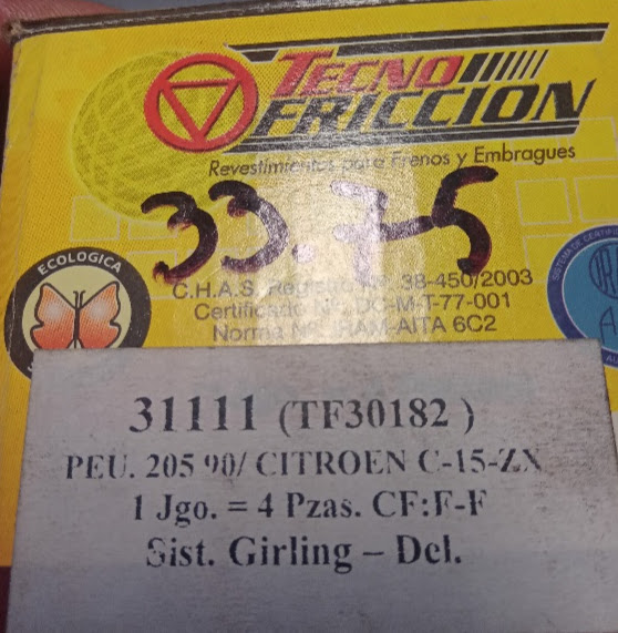 PASTILLAS PARA FRENOS A DISCO PEU 205 /90 CITROEN C-15 ZX