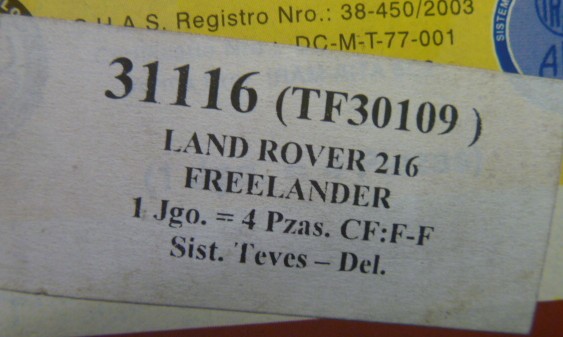 PASTILLAS PARA FRENOS DE DISCO LAND ROVER 216 FREELANDER